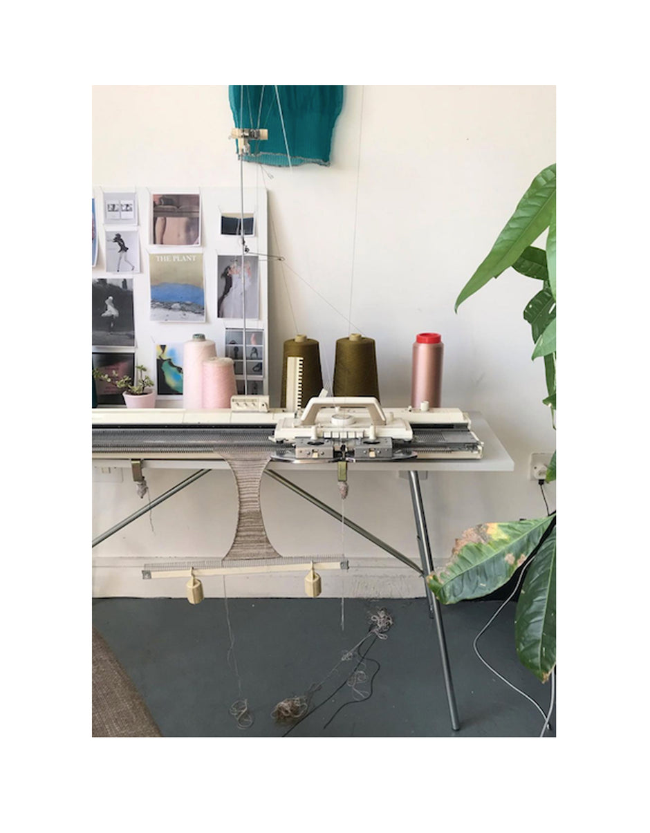 The designer’s process always starts with yarn, blending colors and developing original stitch structures. He works across hand knit, domestic machines, and digital technology, blending instinct with precision. He doesn’t apply knitwear to a design—he builds the design through the knit itself.